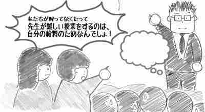 査定昇給制度の運用が開始されたあかつきには、子どもたちや保護者が教職員に対して不信感を持つことも考えられます。「先生は、自分の給料のためにがんばっているんでしょ」。こう言い放たれることだってあるかもしれません。あなたなら、なんて答えますか?