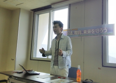 教育のこと、憲法と平和のことなどを軽快なトークで説明していただきました。
